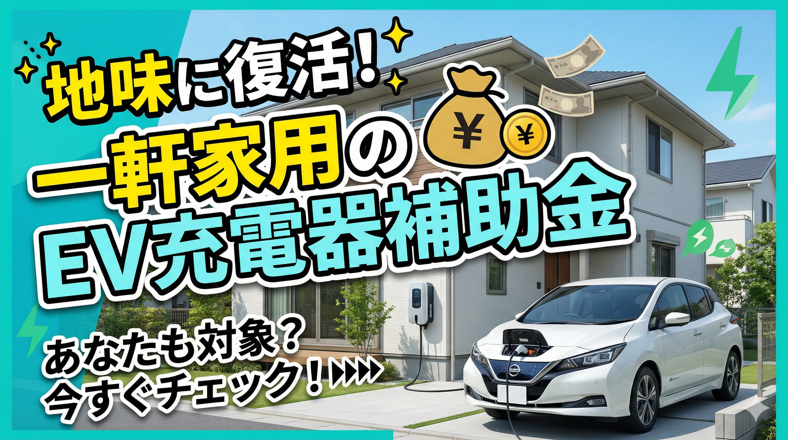 しかし今年度から、一軒家向けのEV充電器補助が復活しました。